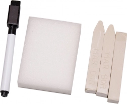 Součástí je 26 barevných magnetických písmen, 3 křídy, houba a suchý fix – vše, co děti potřebují k okamžitému hraní a učení.