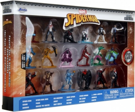Objevte svět Spider‑Mana v kompaktní 18dílné kolekci kovových figurek s bohatými detaily. Každý kousek je odlitek z kovu (die‑cast) s odolnou povrchovou úpravou a širokým podstavcem pro jisté vystavení i hraní. Ideální pro děti od 3 let, fanoušky a sběratele MARVEL.