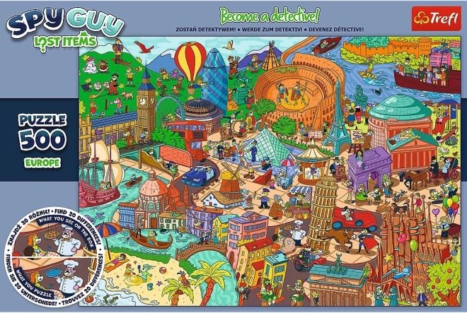 Objevte zábavnou výzvu pro děti i dospělé. Puzzle Spy Guy Lost Items přinášejí chytrou hledačku – některé předměty z ilustrace záhadně zmizely a vaším úkolem je je odhalit. Hotová skládanka má rozměr 480 × 340 mm a zaujme pestrou kreslenou mapou Evropy.