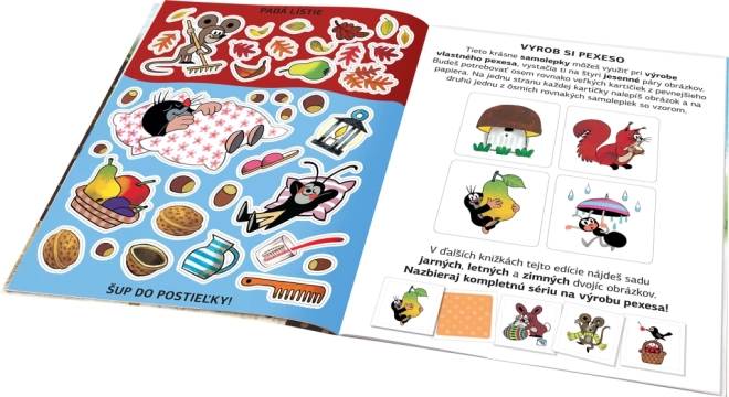 Ponořte se do světa Krtka a jeho podzimních dobrodružství. Tato kniha nabízí dvoustránkové scenerie, které mohou děti doplňovat samolepkami podle zadání nebo vlastní fantazie.