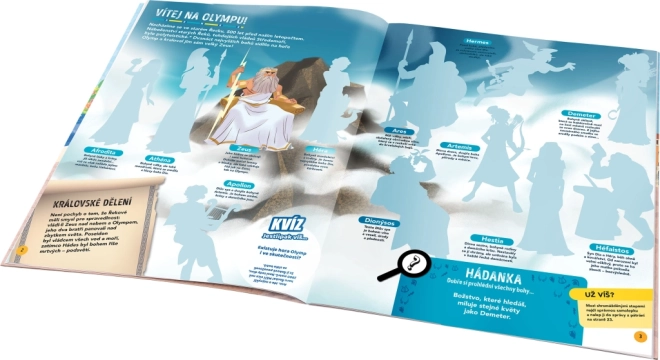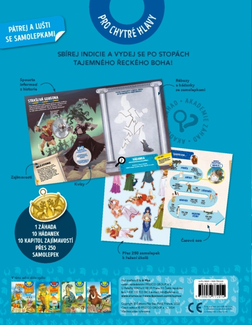 Na co se můžete těšit v této knize? Čekají vás fascinující úkoly a rébusy, které vás zavedou do starověkého Řecka. Zapojte se do pátrání s celou rodinou a zjistěte, ke kterému z bohů byl velkolepý chrám zasvěcen před více než 2500 lety. Prvním krokem je archeologické šetření, kde budete sbírat indicie a klíčové informace. Kniha obsahuje přes 250 samolepek, které vám pomohou vizuálně si přiblížit a zapamatovat naučné informace.