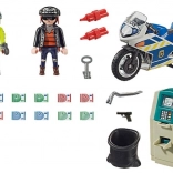 - 2 figurky (policista, zloděj), policejní motocykl, bankomat, páčidlo, vak, bankovky a doplňky
