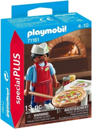 Vytvořte si vlastní pizzerii s figurkou pizzaře PLAYMOBIL Special Plus. Dlouhou lopatou vytáhnete křupavou pizzu z pece, vložíte ji do krabice na pizzu a můžete doručovat dalším hladovým zákazníkům. Díky bohatým doplňkům a realistickým detailům si děti snadno vymyslí nespočet příběhů.