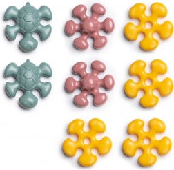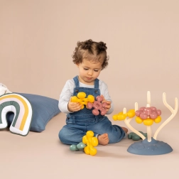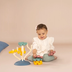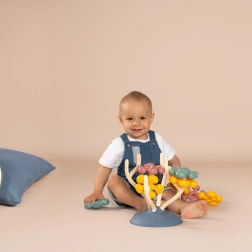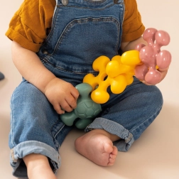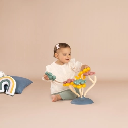 Hračka vyniká ergonomickým designem se zaoblenými tvarmi a moderními barvami, které se hodí do dětského pokoje. Hračka je pečlivě navržena tak, aby podpořila rozvoj smyslového vnímání a jemné motoriky.