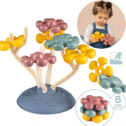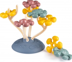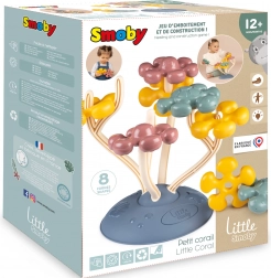 Malé Smoby Korálové stromové hračky jsou vyrobeny z osmi různobarevných plastových prvků připomínajících ozdobné osminohé a želví tvary. Děti mohou jednotlivé části snadno propojit a měnit jejich uspořádání na větvích stromu, což podporuje jejich tvořivost.
