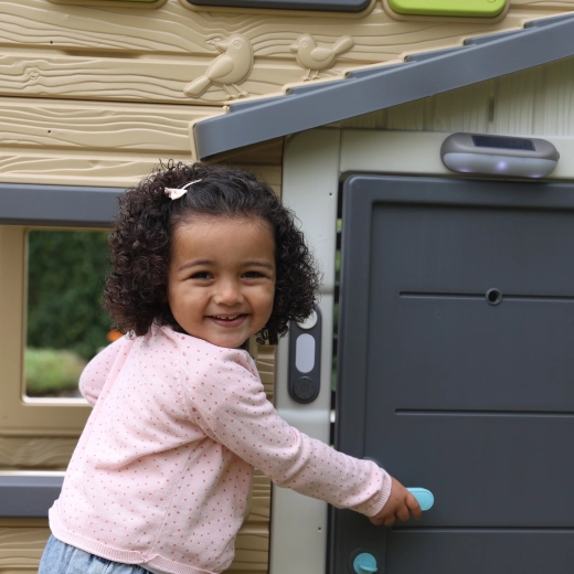 Instalace je rychlá a jednoduchá a zvonek je kompatibilní s aktuálními zahradními domečky SMOBY: Jolie, Lovely, Nature, Pretty, Neo Jura Lodge, Friends House, Friends House Evo, 4 Seasons Playhouse, Sweety Corner Playhouse, Garden House Playhouse, Chef House Playhouse, Domeček na kůlech. Stačí doplnit 2× AAA/LR03 baterie (nejsou součástí) a zábava může začít.