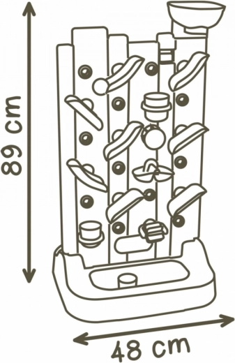 Dvoustranná stěna aktivit SMOBY přináší dětem pestrý svět experimentování a pohybu. Na jedné straně čeká systém rýnek pro pouštění vody nebo míčků, který přirozeně rozvíjí chápání příčiny a následku, vnímání ruchu a směru i trpělivost. Na druhé straně si děti zahrají piškvorky, procvičí se v přesnosti při házení do košíků a vyzkouší gymnastické pozice na otočném kole aktivit.