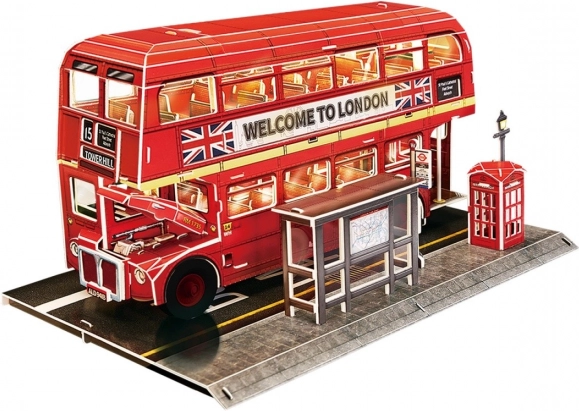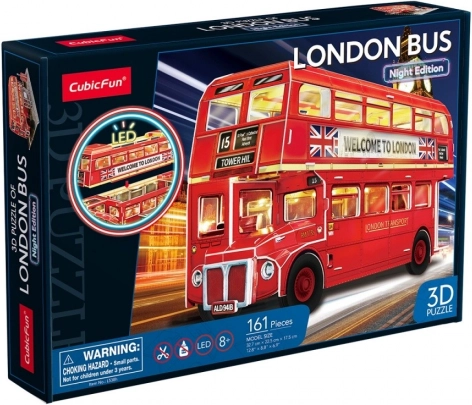 Vytvořte si detailní model legendárního londýnského doubledeckeru z 3D puzzle CubicFun. Integrované LED osvětlení dodá hotovému modelu působivou atmosféru a promění jej v elegantní dekoraci, která večer doslova září.