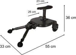 Užijte si pohodlné procházky s dvěma dětmi díky univerzálnímu stupátku se sedátkem. Starší dítě může dle potřeby sedět nebo stát, zatímco mladší odpočívá v kočárku. Odolné zpracování a stabilní kolečka zajišťují plynulou a bezpečnou jízdu.