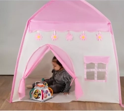 Stylový stan pro děti v růžovo-bílé kombinaci nabízí tři okénka ze síťoviny a pohodlný vchod, takže je ideální pro čtení, hraní i uklízení oblíbených hraček. Díky kompaktním rozměrům 126 × 130 × 90 cm se hodí do dětského pokoje a lze ho vzít i na chatu či terasu.