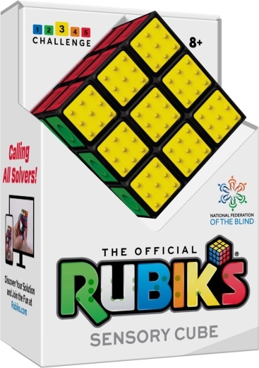 Rubikova kostka 3x3 Rubik’s Sensory Cube přináší legendární hlavolam v přístupné podobě s reliéfními vzory na každé barvě. Textury – tečky (žlutá), čtverce (červená), plné kruhy (modrá), prstence (zelená), křížky (oranžová) a hladká (bílá) – umožňují rozlišit strany i hmatem.