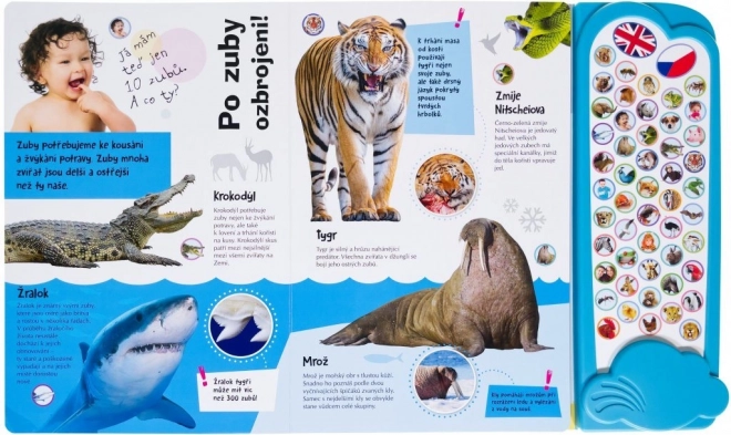 Prozkoumejte rozmanitou říši zvířat s interaktivní encyklopedií, která propojuje hru a učení. Díky speciálním ikonám děti snadno poznají, která zvířata si mohou poslechnout, a jediným dotykem si zvolí jazyk – češtinu nebo angličtinu.