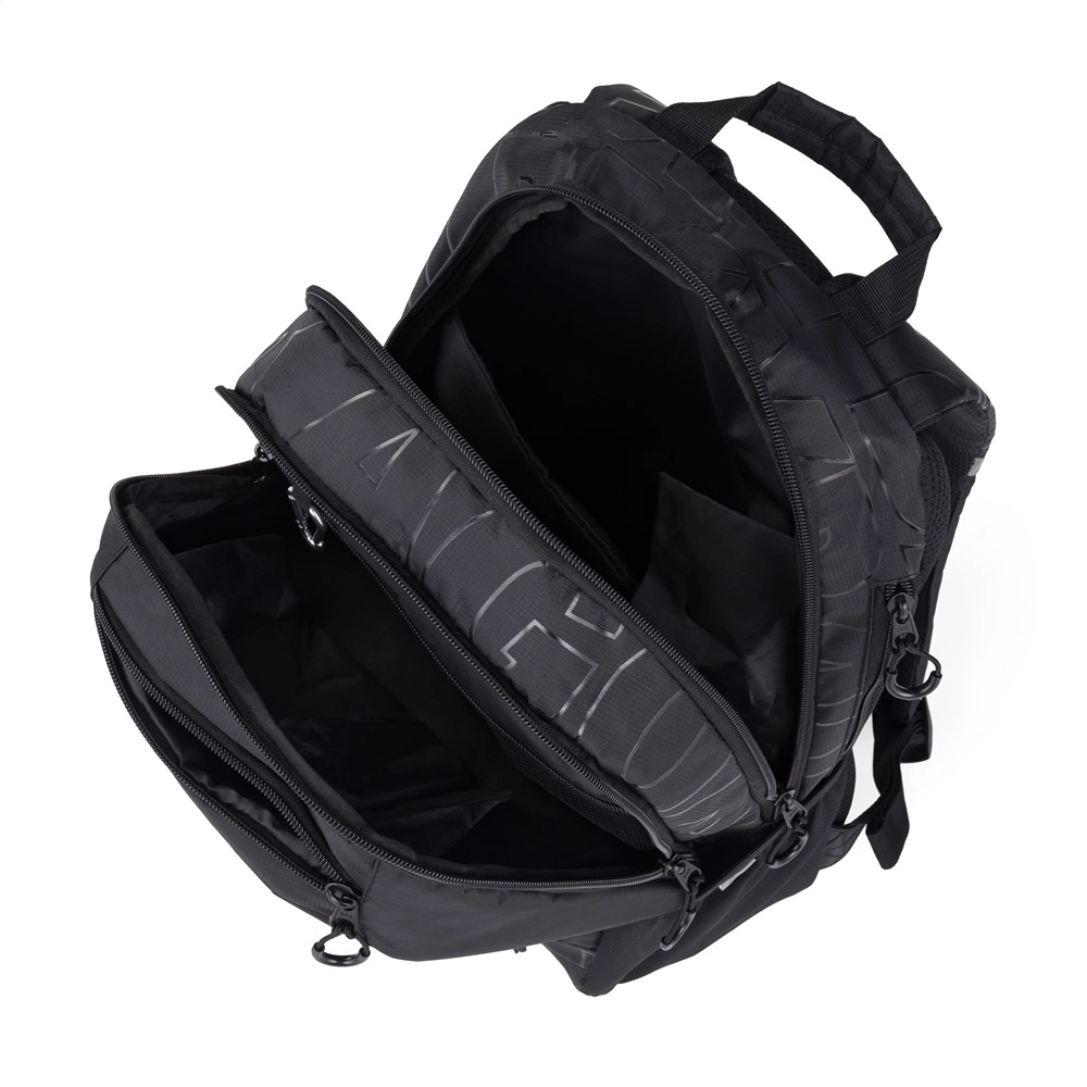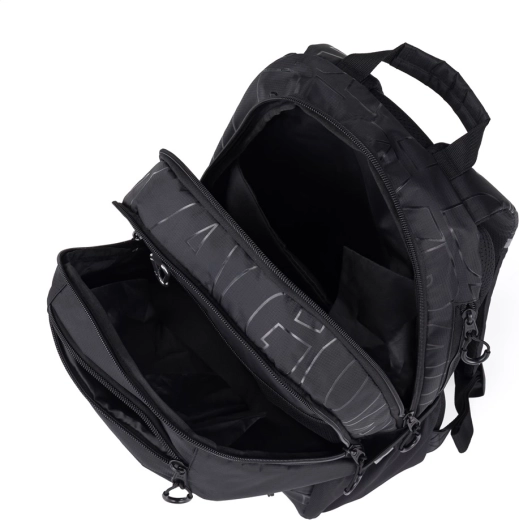 - 2 hlavní komory, přední kapsa, vyztužená kapsa na notebook, kapsa na drobnosti, karabina na klíče, skrytá kapsa na zádech, boční kapsa na láhev