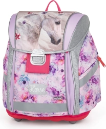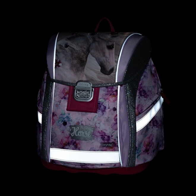Školní sada Oxybag Premium Light Kůň Romantic je ideální pro žáky prvních a druhých tříd, vyvinutá pro maximální pohodlí a bezpečnost. Batoh váží pouhých 970 gramů, což zajišťuje snadné nošení, zatímco reflexní prvky zvýší viditelnost vašeho dítěte. Ergonomicky tvarovaná záda, spolu s polstrovanými ramenními popruhy, poskytují vynikající podporu a komfort. Přehledná hlavní komora s rozřazovačem a praktické kapsy nabízejí dostatek úložného prostoru.