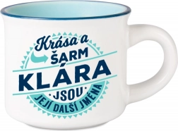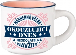Hrníček má kompaktní rozměry - výška 5 cm a průměr 8 cm, což jej činí snadno přenosným a skladným. Jeho stylový vzhled přidá eleganci vaší kuchyni a díky možnosti mytí v myčce nádobí jej budete mít vždy připravený k použití bez námahy.