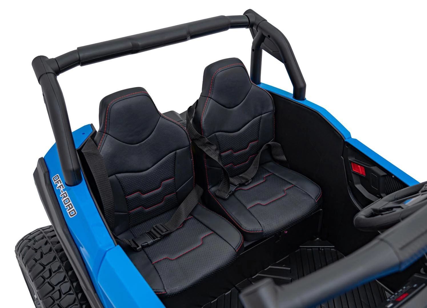 UTV X3 Off-Road je dětské elektrické auto navržené pro dobrodružství. Díky silné 24V baterii a čtyřem motorům 4×200 W zvládá jízdu na různých površích, zatímco pěnová EVA kola s hrubým dezénem zajišťují výbornou trakci a tichý chod. O bezpečnost a komfort se starají bezpečnostní pásy, plynulý rozjezd, přepínání vpřed/vzad a LED osvětlení.