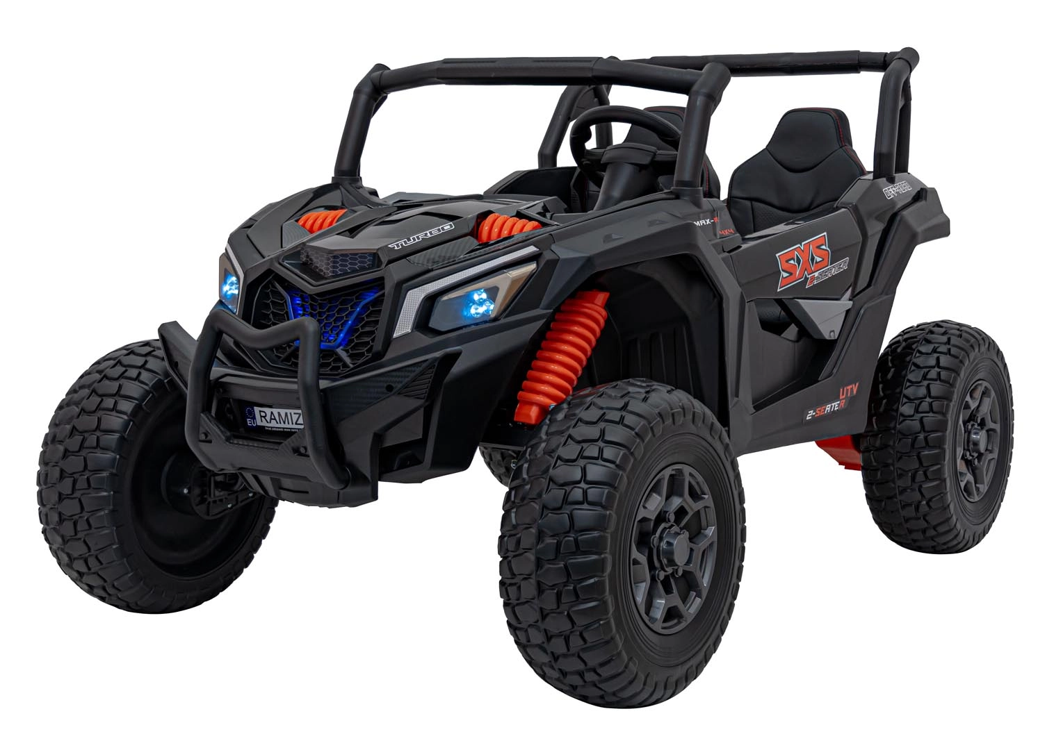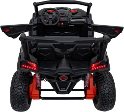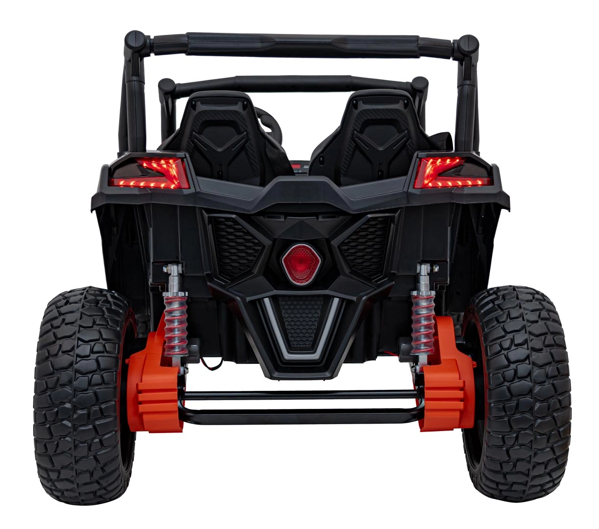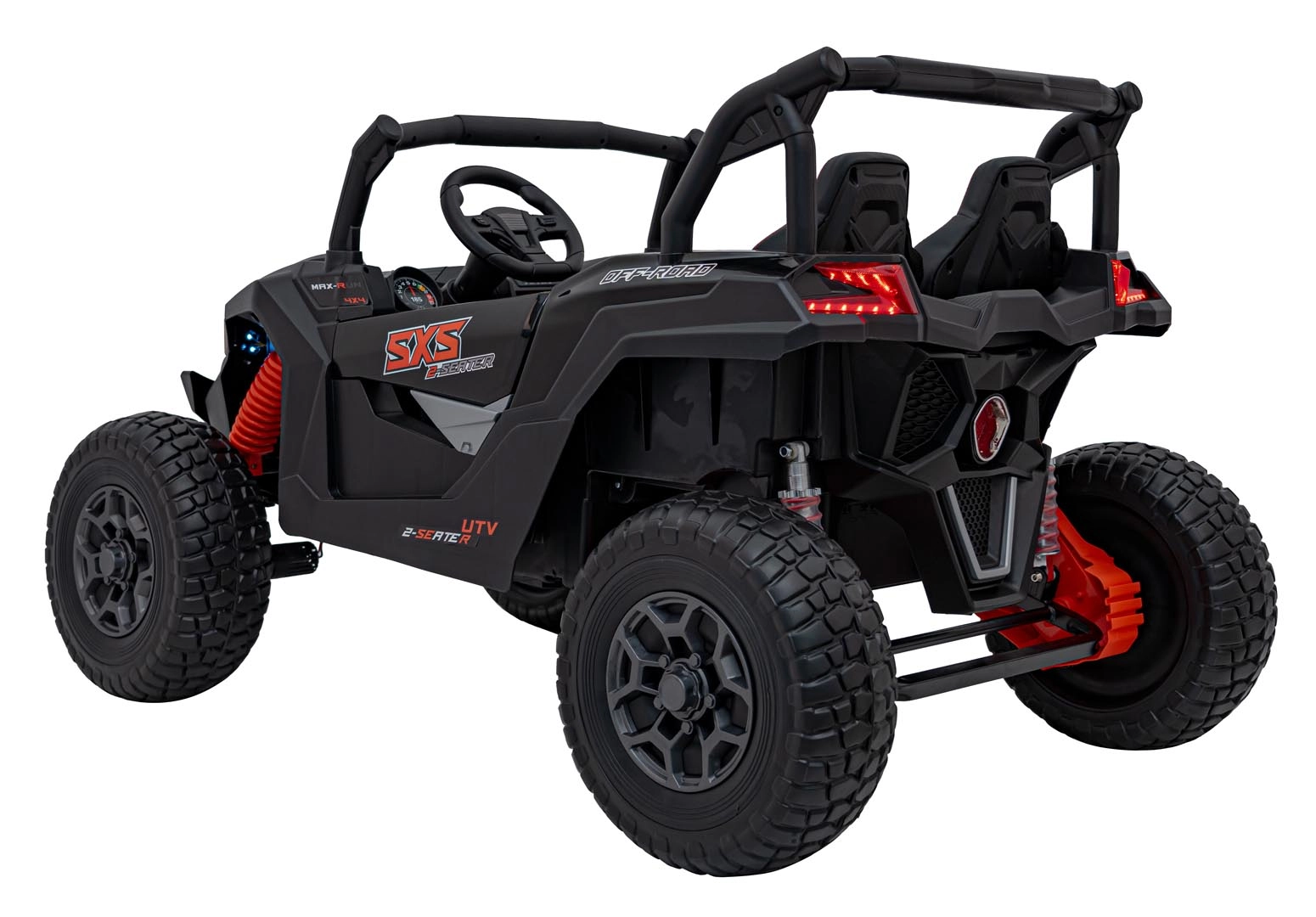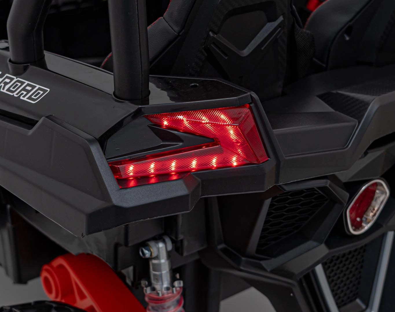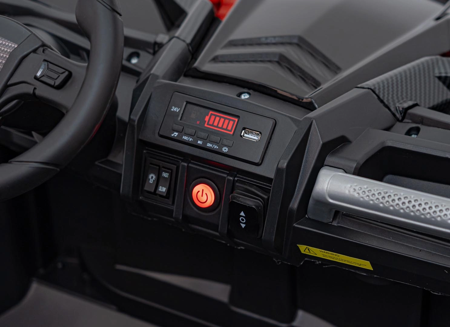 UTV X3 Off-Road je prostorné dvoumístné dětské auto do terénu, které kombinuje sílu, pohodlí a bezpečnost. Čtyři motory 4×200 W poskytují tah pro nezpevněné povrchy, vysoký světlý profil 20 cm a velká EVA kola 37 × 14 cm zajišťují stabilitu a tlumení nerovností. Díky plynulému startu a volbě 2 rychlostí je jízda komfortní pro začátečníky i zkušenější jezdce.