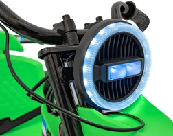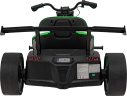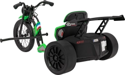 Trike je poháněn dvěma motory s rychlostí 25000 ot./min. a je vybaven bateriemi 2x12V/10Ah pro dlouhotrvající zábavu.