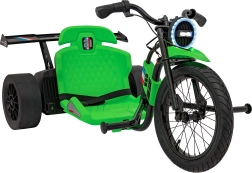 Trike je vybavený pevným předním pneumatikovým kolem o rozměrech 41x7 cm a plastovými zadními koly pro drift o rozměrech 28x11 cm. Umožňuje snadné manévrování díky svým ergonomickým rukojetím a kvalitním LED světlům s možností přepínání. Komfort zajišťuje sportovní sedlo s rozměry 43 cm x 31 cm x 40 cm, nabízející dvojitou regulaci.