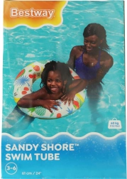 Rozveselte letní koupání s dětským nafukovacím kruhem BESTWAY o průměru 61 cm. Vyznačuje se barevným ovocným potiskem, vysokou viditelností ve vodě a odolným PVC materiálem. Díky bezpečnostnímu ventilu si kruh drží správnou hustotu vzduchu a nabízí spolehlivou vztlakovou podporu pro děti ve věku 3–6 let.
