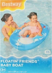 Bezpečí a komfort zajišťuje nafukovací podlaha a měkký okraj po celém obvodu. Praktické tažné lanko umožní rodičům člun přitáhnout nebo vést v mělké vodě. Součástí balení je také opravná záplata.
