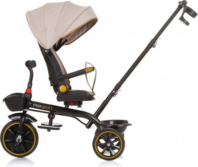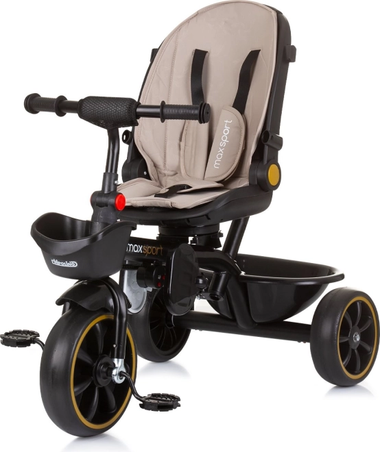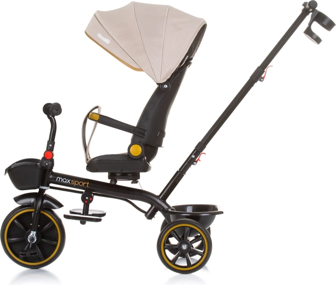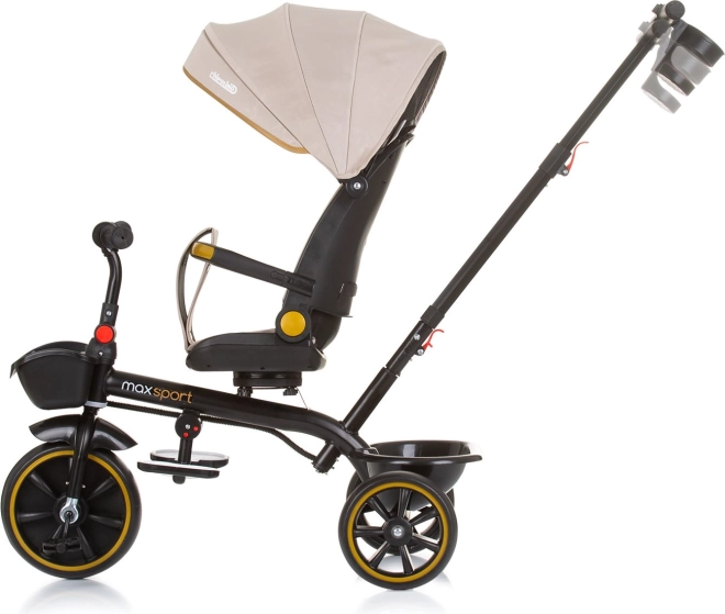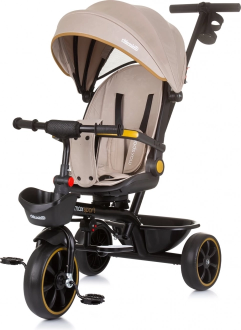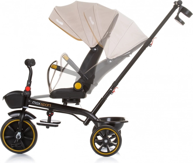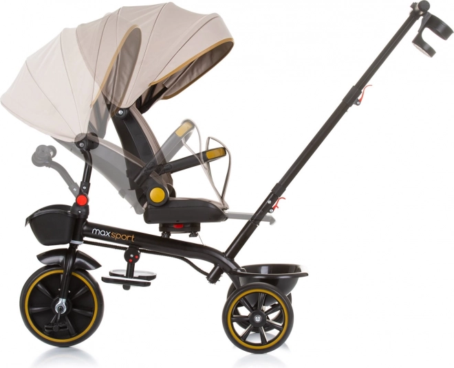Tato praktická tříkolka kombinuje funkce kočárku a samostatné jízdy. Otočné sedadlo o 360° umožňuje přepravu po i proti směru jízdy, měkké polstrování a dvě polohy náklonu zajistí komfort. Odnímatelná stříška se sluneční clonou chrání před sluncem, zatímco bezpečnostní pásy a madlo drží malého jezdce v bezpečí.