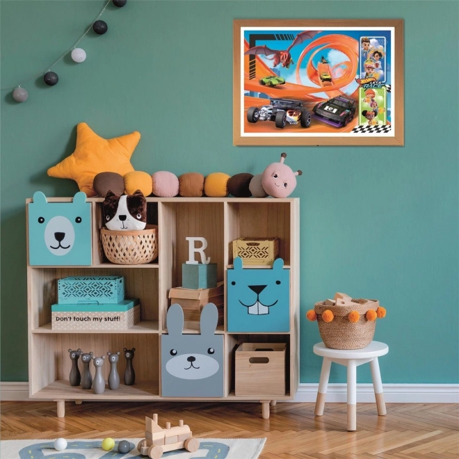 Zářivé barvy a akční závodní scéna motivují děti skládat dál a znovu. Ideální pro malé fanoušky autíček a rychlosti.