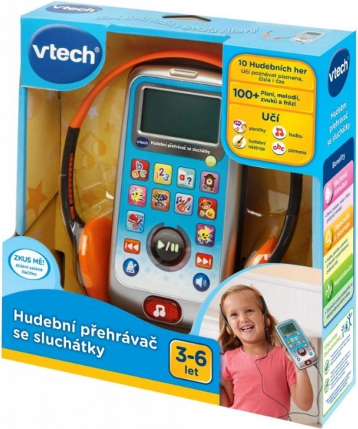 Objevte chytrý hudební přehrávač Vtech se sluchátky, který děti zábavnou formou učí čas, písmena a čísla. Podporuje logické uvažování, hudební cítění a rytmus, nabízí 10 hudebních a tanečních her a obsahuje bezpečná sluchátka s omezenou hlasitostí šetrná k dětskému sluchu.