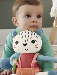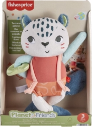 Plyšová panterka FISHER-PRICE Planet Friends je navržená pro jemnou smyslovou stimulaci nejmenších. Kontrastní vzory přitahují pozornost, měkké textury a ouška podporují zkoumání dotykem a šustící „botičky“ vybízejí ke stisknutí a poslechu. Dlouhé nožky, popruhy a posuvný kroužek motivují děti k uchopování, tahání a tréninku jemné motoriky.