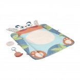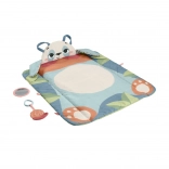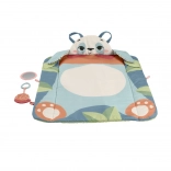 Objevte měkkou a všestrannou podložku pro miminka, která podporuje hrátky na zádech, pást koníčky i cestování. Ekologicky šetrná podložka s motivem pandy nabízí bohatou senzorickou stimulaci díky odnímatelnému zrcátku a šusticí hračce, snadno se smotá a zajistí popruhy a po vyjmutí hraček ji můžete prát v pračce.