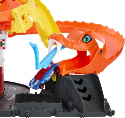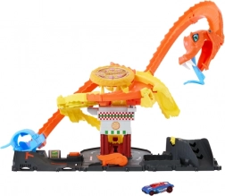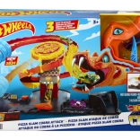Postavte se hrozivé kobře v pizzerii a zachraňte město HOT WHEELS jako hrdinové ze seriálu „Let’s Race“! Tento akční set nabízí tři náhodné trasy, efektní pasti a dynamické kaskadérské prvky. Napínavé kobra překážky, 3 možné směry jízdy a propojení s dalšími sety Hot Wheels City zaručí nekonečnou zábavu. Součástí je 1 kovový angličák.
