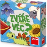 Hra 'Zvíře nebo věc?' od společnosti Dino je ideální zábavou pro celou rodinu, vhodná na cesty či domácí večery. S touto hrou: