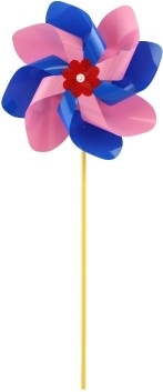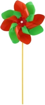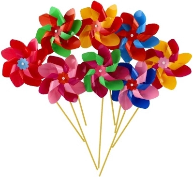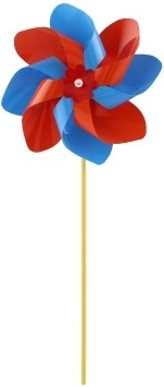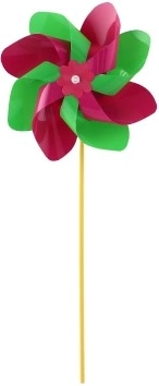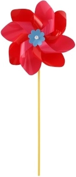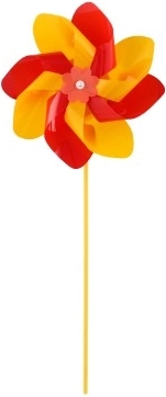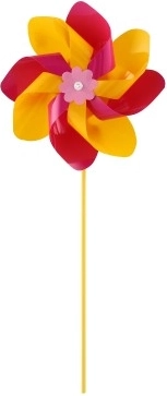 Větrník je vyroben z barevného plastu, jehož zářivé barvy přitáhnou pozornost každého kolemjdoucího.