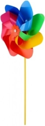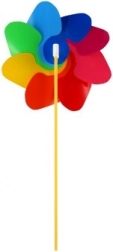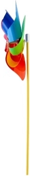 Větrník zaujme svými živými barvami červené, modré, zelené a žluté, které přitahují pozornost a zkrášlují každé místo.