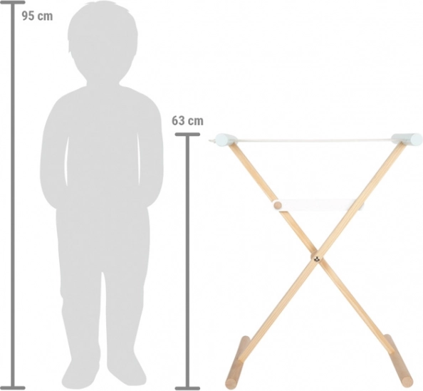 Stabilní konstrukce s bezpečnostní tyčí zajistí, že sušák zůstane pevný i při intenzivním hraní. Jemná barva přírodního dřeva dodává kouzelný vzhled, který se hodí do každého interiéru. Po ukončení hry se sušák snadno složí, což šetří místo.