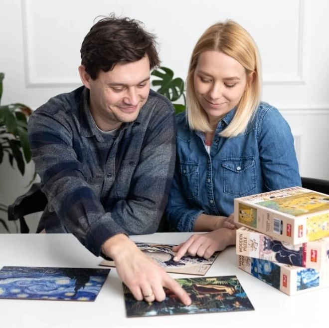 Dřevěné oboustranné puzzle TREFL nabízí milovníkům umění zábavný způsob, jak zažít slavná díla malířských mistrů. Puzzle je vyrobeno z kvalitní a odolné dřevovláknité desky pro hladké a přesné zapadnutí dílků.