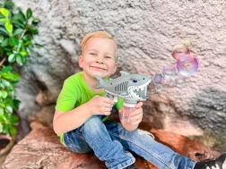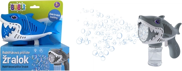 Děti milují bubliny a s bublifukovou pistolí ve tvaru žraloka si užijí hodiny zábavy. Funguje na principu stisknutí spouště, který aktivuje mechanismus foukající vzduch přes bublinkovou kapalinu. Po stisknutí spouště nepřetržitě vylétává velké množství bublin, což děti zbožňují.