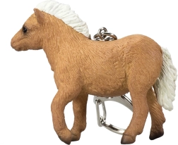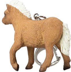 Klíčenka s vysoce detailní miniaturou shetlandského hříběte.