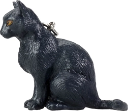 Figurka kočky má detailní texturu a zbarvení, které dodávají klíčence její realistický vzhled.