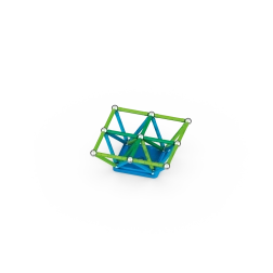 Sada nabízí magnetické tyčinky a kuličky zajišťující odolnost a stabilitu každé konstrukce. Obsahuje dva speciální čtvercové a dva pětiúhelníkové podstavce.