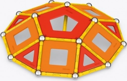 Objevte sílu geometrie s Geomag Klasik Panely. Tato magnetická stavebnice obsahuje 28 žlutých magnetických tyček, 20 ocelových kuliček, 16 trojúhelníkových výplní, 2 červené výplně ve tvaru pětiúhelníku a 12 výplní ve tvaru čtverce. Součástí je také praktický plastový box na kuličky a tyčky.