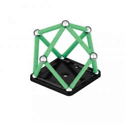 - 12× magnetická tyčinka svítící ve tmě, 12× kovová kulička, 1× čtvercová základna, 1× úložný box