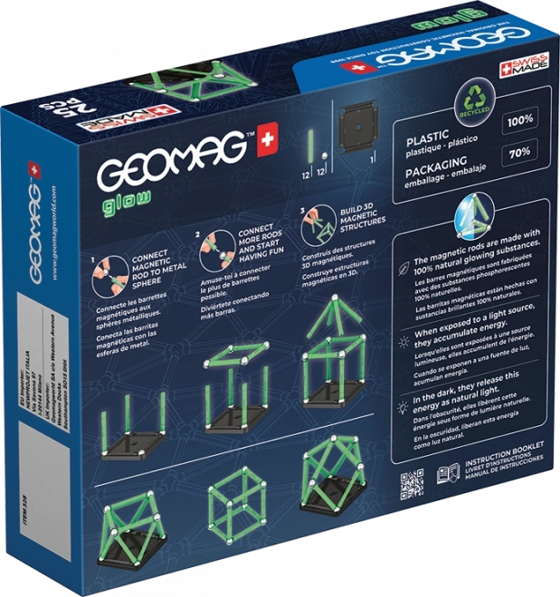 Stavebnice Geomag Glow přináší dětem i rodičům hodiny chytré zábavy. Magnetické tyčinky se speciálními látkami svítí ve tmě, takže postavené modely vypadají skvěle ve dne i v noci. Díly jsou vyrobené ze 100% recyklovaného plastu, což z ní dělá šetrnou volbu pro životní prostředí.