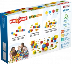 - 61 dílků: 16 magnetických kostek + 45 oboustranných klipů