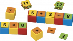 Oboustranné klipy s čísly a znaménky umožní skládat jednoduché i složitější příklady. Děti přirozeně trénují sčítání, odčítání a základy násobení.