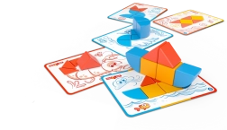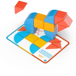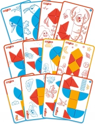 Součástí je 6 oboustranných karet s 12 úlohami, které vedou od jednoduchých skládaček k pokročilejším tvarům a podněcují logické myšlení.