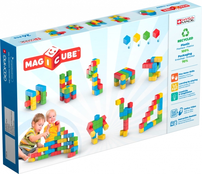 Objevte kreativní svět s magnetickou stavebnicí Geomag Magicube Creative. Díky speciální konstrukci se kostky přitahují ze všech šesti stran a umožňují stavění ve 3D i volně v prostoru. Sada obsahuje 24 barevných kostek a je vhodná již od 1 roku – ideální pro rozvoj fantazie, jemné motoriky a koordinace.