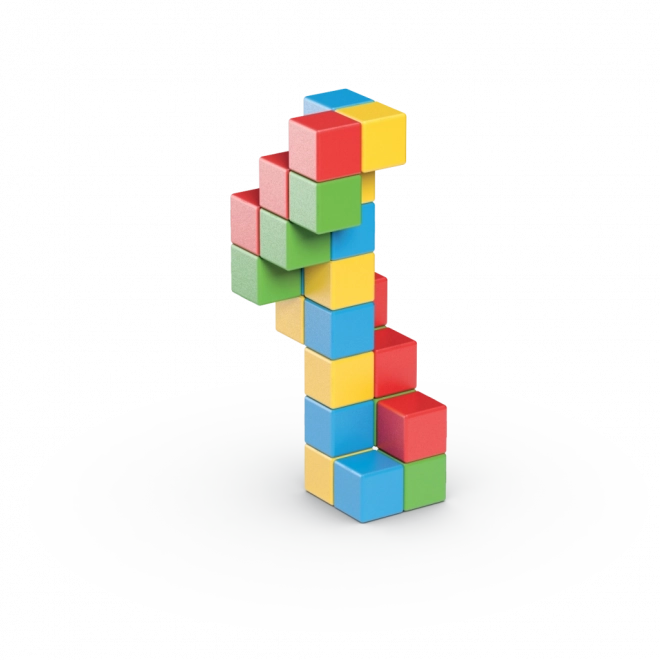Sada 24 kostek ve čtyřech barvách je perfektní pro první konstrukční pokusy, samostatnou hru i společné tvoření s rodiči. Materiály jsou odolné a bezpečné, navržené speciálně pro nejmenší děti.