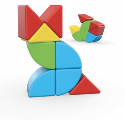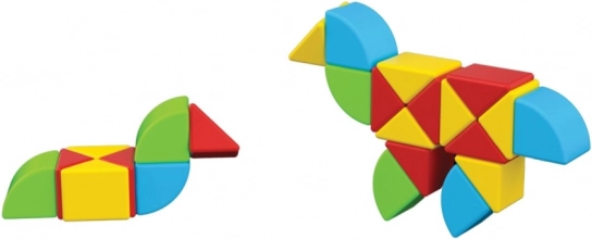 Půlkostky a výseče umožňují tvořit základní tvary, zvířátka i fantazijní modely a rozvíjet představivost.