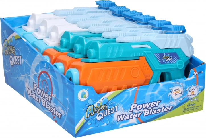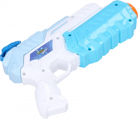 Zábavná vodní puška ideální pro letní hry na zahradě nebo na pláži. K dispozici ve dvou výrazných barvách, modré a oranžové.